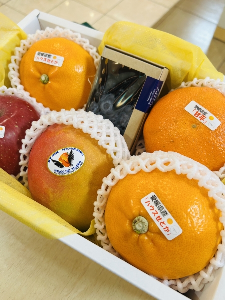 ペルー産ケントマンゴー、愛媛県産せとか・甘平、青森県産サンふじ、愛知県産ブルーベリー