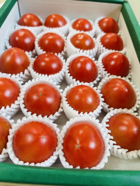 甘いだけのフルーツトマトとは一線を画した旨味のフルーツトマトです。フルーツ系にありがちな果皮の硬さも適度で食べやすく、「ここのじゃないとダメ」な、お客様続出中。